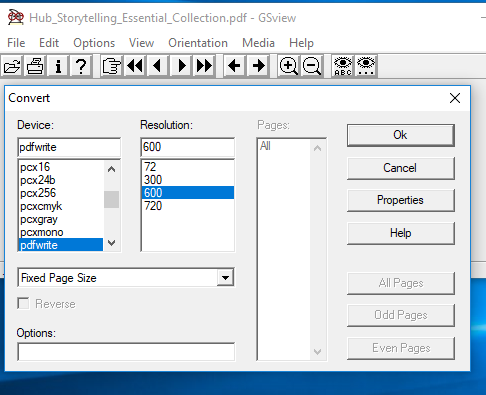 7 Make sure pdfwrite is displayed in the "Device" window. If not, you'll need to select it from the drop-down menu here.