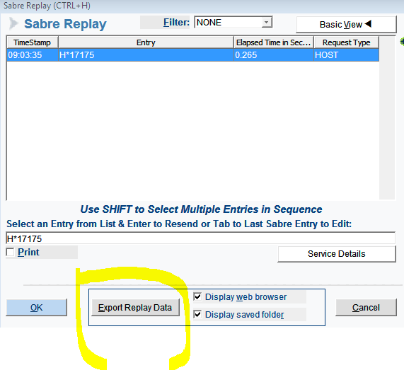 On the Ctr+H window there is button called Export Replay Data click on that and save the log file then you can send it to sabre .You can see as well the below screen shot .