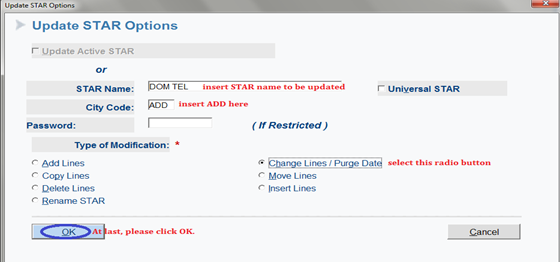 which STAR is to be updated: or using below screenshots: